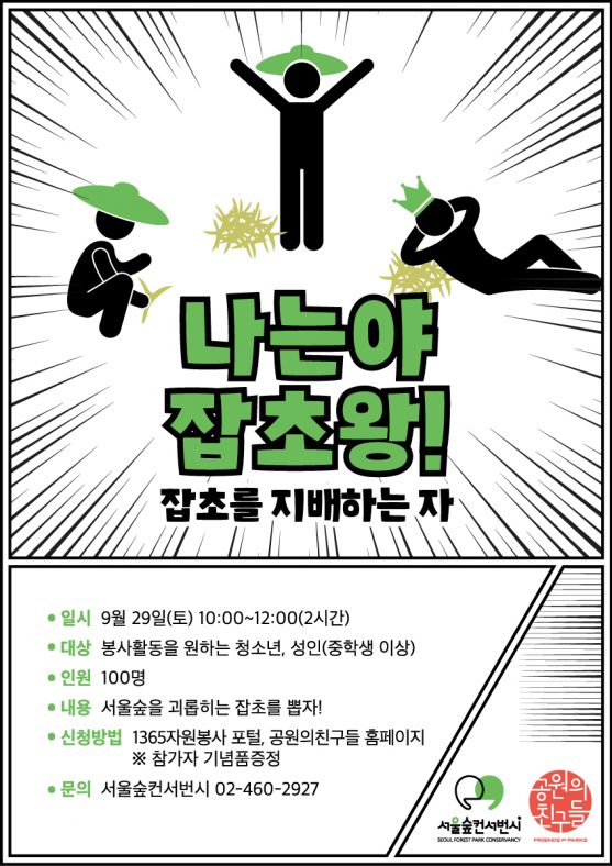 [공원의친구들] 나는야 잡초왕자원봉사By 자원봉사협력팀2018년 08월 23일Leave a comment[공원의 친구들] 나는야 잡초왕👑 서울숲공원에서 잡초를 지배할 자! 누구인가?👸🤴 서울숲공원의 잡초를 지배하기 위하여 내가…