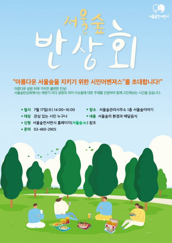 7월 [서울숲반상회] 초대장공지사항, 캠페인By 자원봉사협력팀2019년 07월 05일Leave a comment7월 [서울숲반상회] 초대장 “아름다운 서울숲을 지키기 위한 시민어벤져스를 초대합니다!” 아름다운 공원 뒤에 가려진 불편한 진실!…