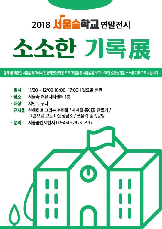 [전시] 서울숲학교 소소한 기록展프로그램By pg2018년 11월 16일Leave a comment 2018 서울숲학교 연말전시 🎄 소소한 기록 展 한 해를 마무리하며…. 봄부터 가을까지 진행되었던 많은…