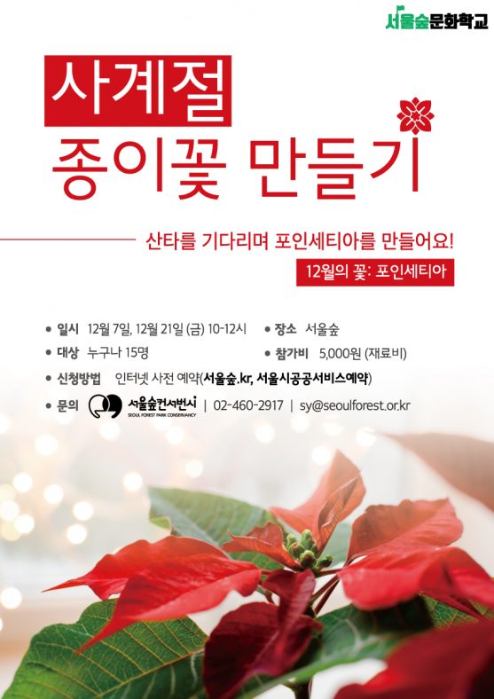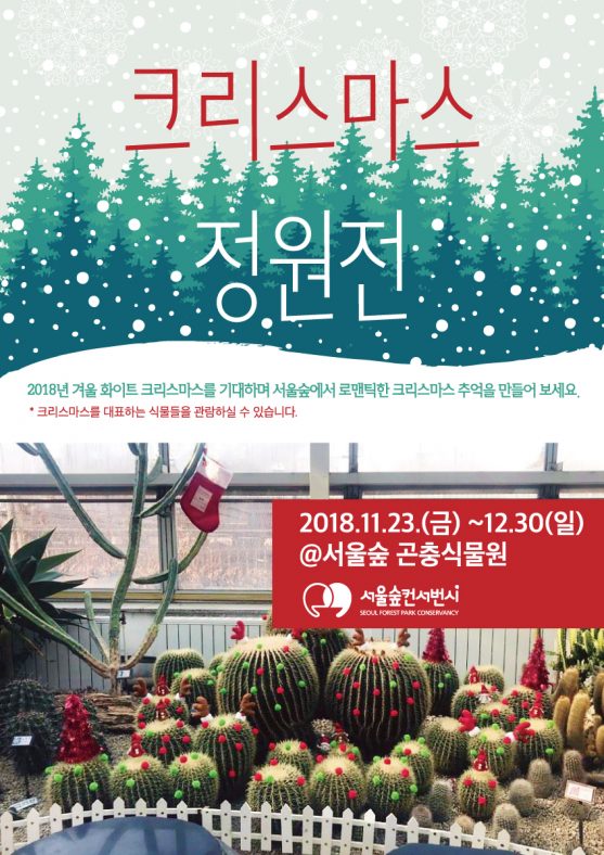 [특별전시] 크리스마스 정원전프로그램By pg2018년 11월 26일Leave a comment겨울에도 따뜻한 서울숲 곤충식물원에서 진행되는 크리스마스 정원전~ 크리스마스를 대표하는 식물들로 꾸며진 예쁜 정원에서 즐거운 시간…