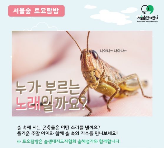 9월 토요탐방프로그램By pg2017년 08월 23일Leave a comment[서울숲 토요탐방] 누가 부르는 노래일까요? 숲 속에 사는 곤충들은 어떤 소리를 내는지 알아보는 시간! 숲해설가와…