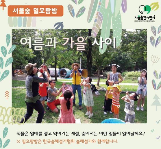 9월 일요시민탐방프로그램By pg2017년 08월 23일Leave a comment[서울숲 일요탐방] “여름과 가을 사이” 식물은 열매를 맺고 익어가는 계절! 숲에서는 어떤 일들이 일어날까요? 9월 주말에는 “여름과 가을 사이”를…