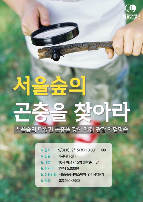 서울숲의 곤충을 찾아라프로그램By pg2018년 08월 28일Leave a comment서울숲의 곤충을 찾아라 ▶ 서울숲의 다양한 곤충의 생태 채집관찰 자연학습 일시 : 9/8(토), 9/15(토) 10:00~11:00 (집결)…