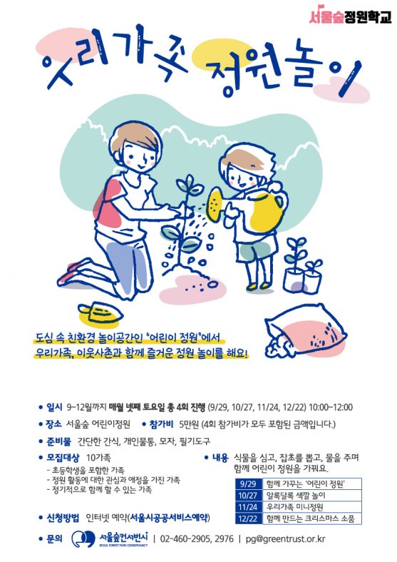 [마감] 우리가족 정원놀이프로그램By pg2018년 08월 31일Leave a comment[서울숲 정원학교] 우리가족 정원 놀이 👩🏻 🌾👨🏻🌾 도심 속 친환경 놀이공간인 ‘서울숲 어린이 정원’에서 🌷 우리가족, 이웃사촌과 함께 즐거운…