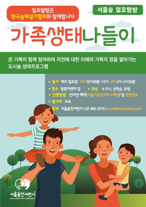 가족생태나들이프로그램By pg2018년 08월 27일Leave a comment[가족생태나들이] ‘단풍의 신비와 씨앗의 꿈’ 한국숲해설가협회 숲해설가와 함께 서울숲 곳곳을 거닐며 움츠린 몸 활짝 펴고…