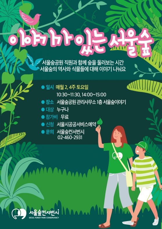 [서울숲투어]이야기가 있는 서울숲공지사항, 프로그램By pg2021년 02월 26일Leave a comment \ 서울숲공원 직원과 함께 숲을 둘러보는 시간, 서울숲의 역사와 식물들에 대해 이야기 나눠요! –…