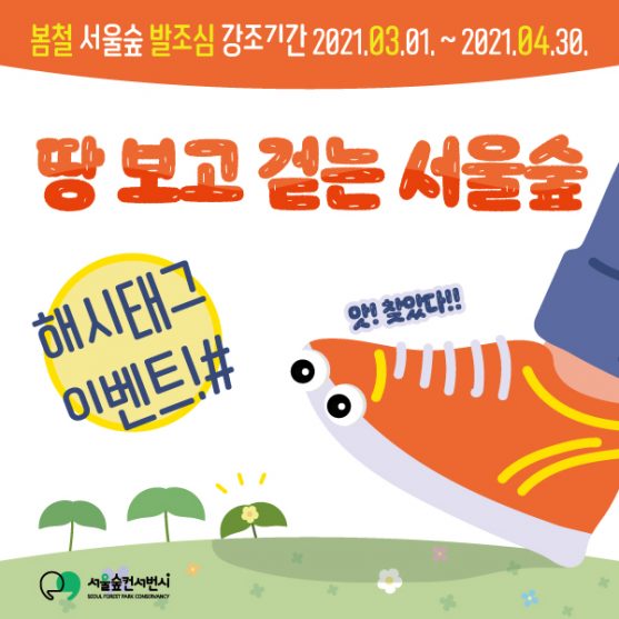 [기간연장] 작은 봄 꽃을 발견하고, “땅 보고 걷는 서울숲” 이벤트에 참여하세요.😊공지사항, 소식By seoulforest2021년 02월 28일Leave a comment[4월까지 기간 연장!] 봄철 서울숲 발조심 강조기간💥 땅에 핀 작은 봄 꽃을 발견하고 “땅 보고…