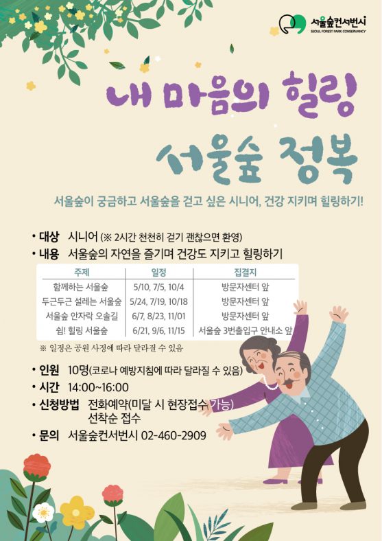 같이 숲 힐링 숲 서울숲에서 해요공지사항, 프로그램By pg2021년 05월 04일Leave a comment대상 : 시니어 내용 : 쉼이 필요한 시니어들에게 하늘멍 하며 나를 찾는 힐링 여행 인원…